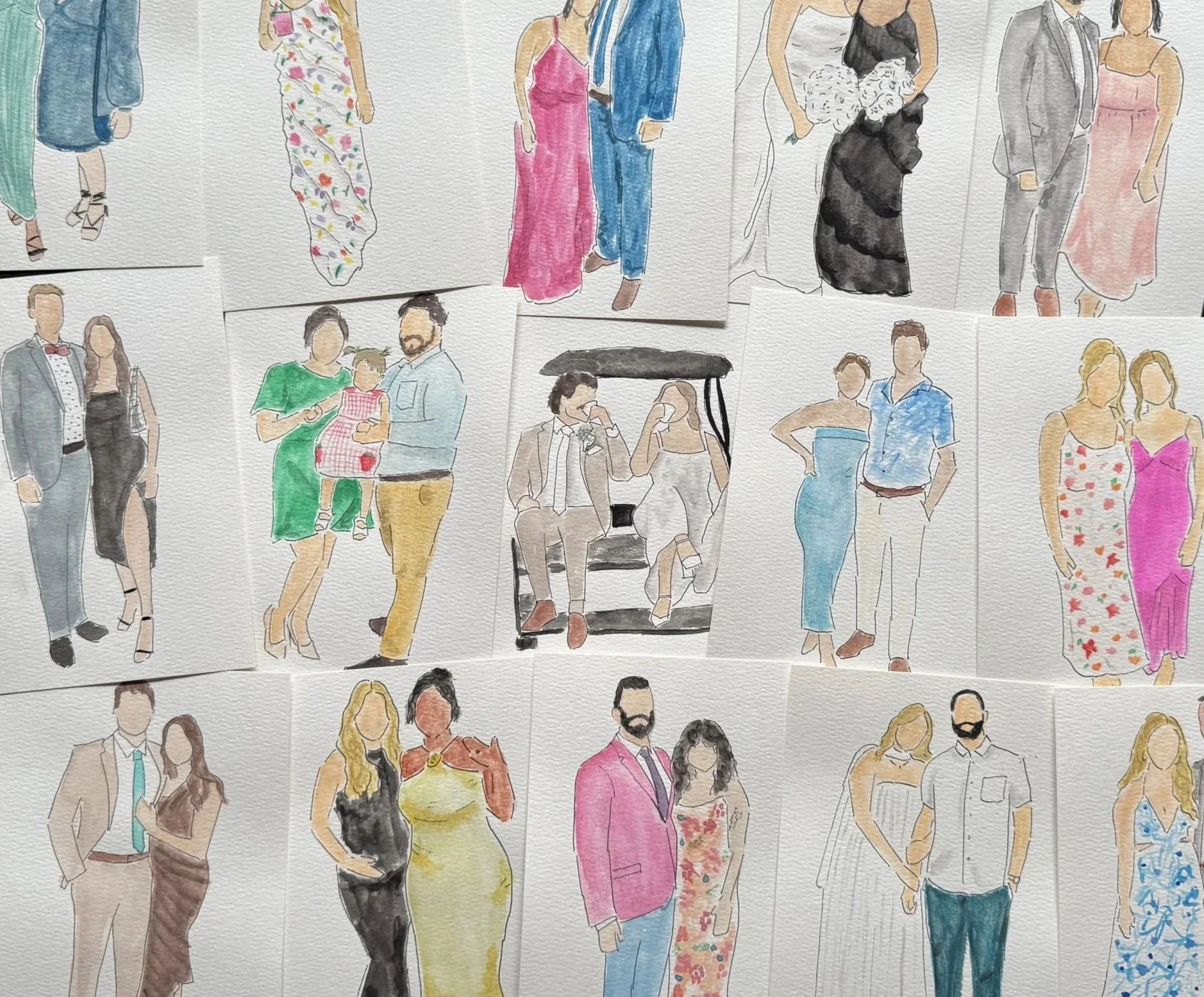 Treat your guests to a one-of-a-kind experience with custom watercolor portraits painted live during your event.
